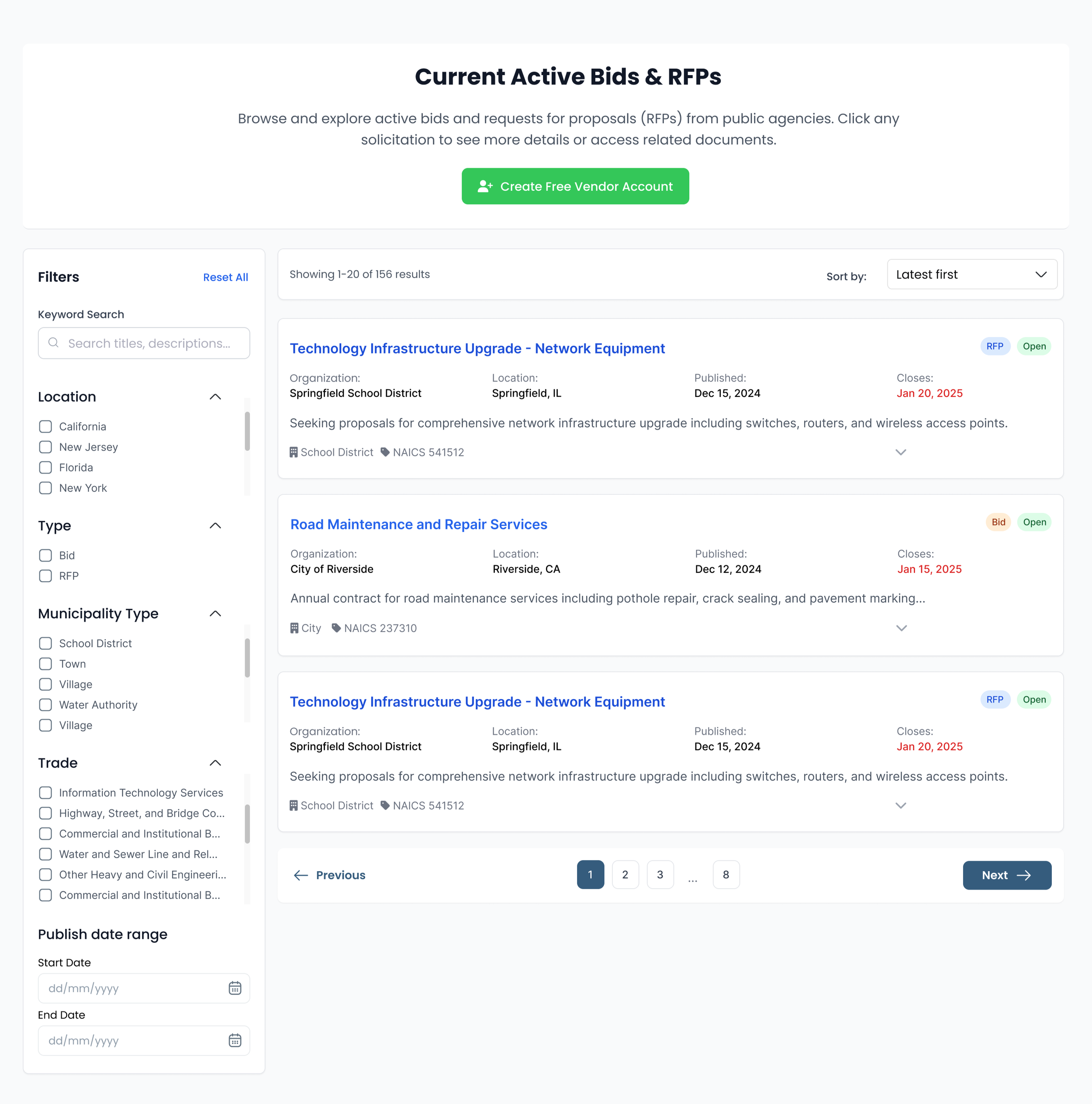 Our platform enforces state-specific thresholds and deadlines in full compliance with General Municipal Law and other procurement regulations. Bids submitted after the deadline are automatically rejected, while all on-time submissions are time-stamped, logged, and stored in an immutable audit trail.