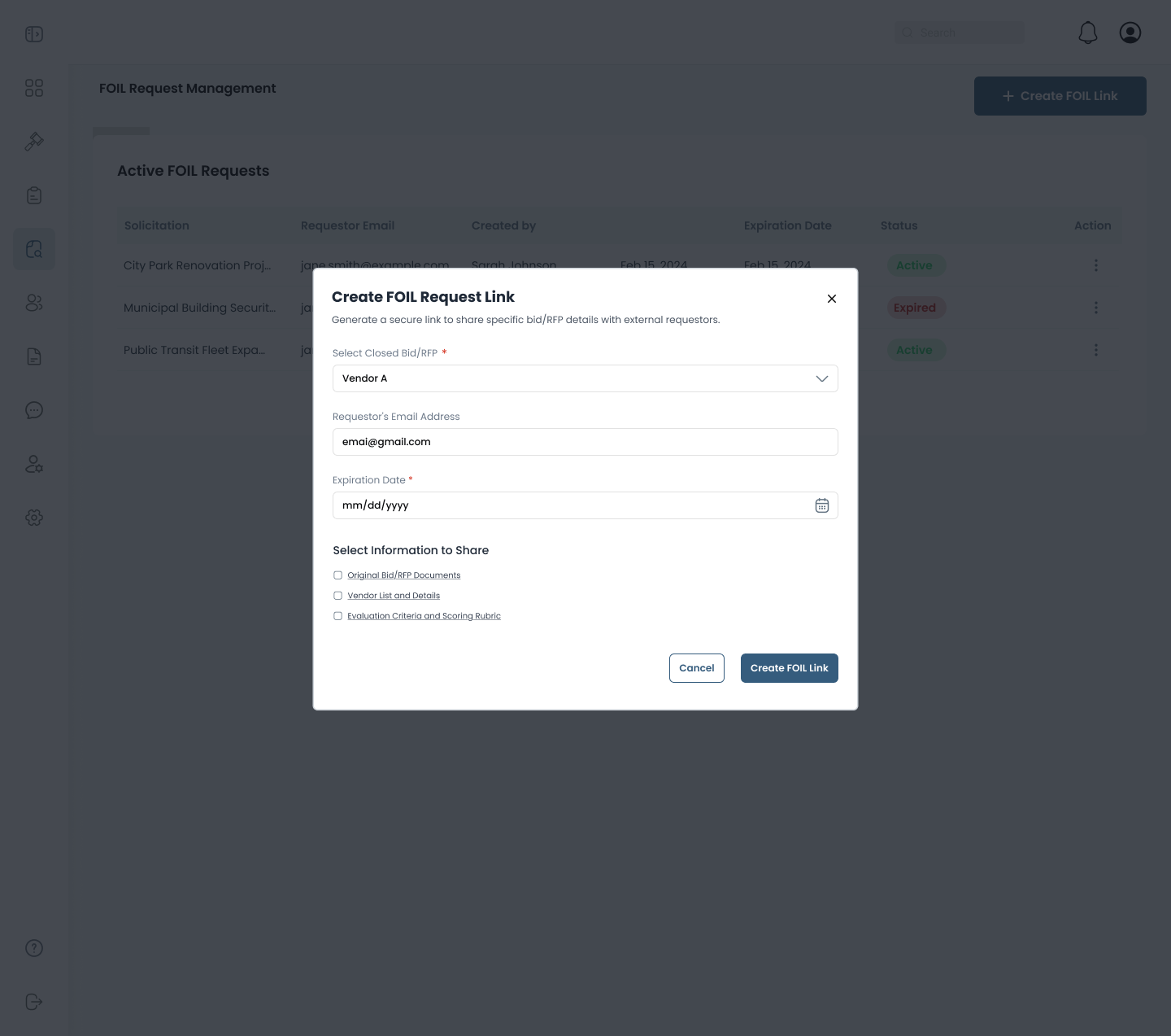 Instead of spending hours gathering files from emails, drives, and paper archives, users can instantly generate complete, exportable FOIL response packets directly within the platform. All records are securely stored and organized by project, ensuring that nothing is lost, altered, or overlooked.